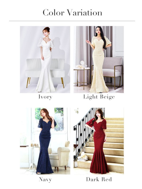 Lサイズあり【UNA VALERIE / ウナヴァレリェ】 総レース/ 半袖/ 袖あり/ サイドタック/ マーメイド/ ロングドレス long[OF05] [V60168L-IV-S2506]