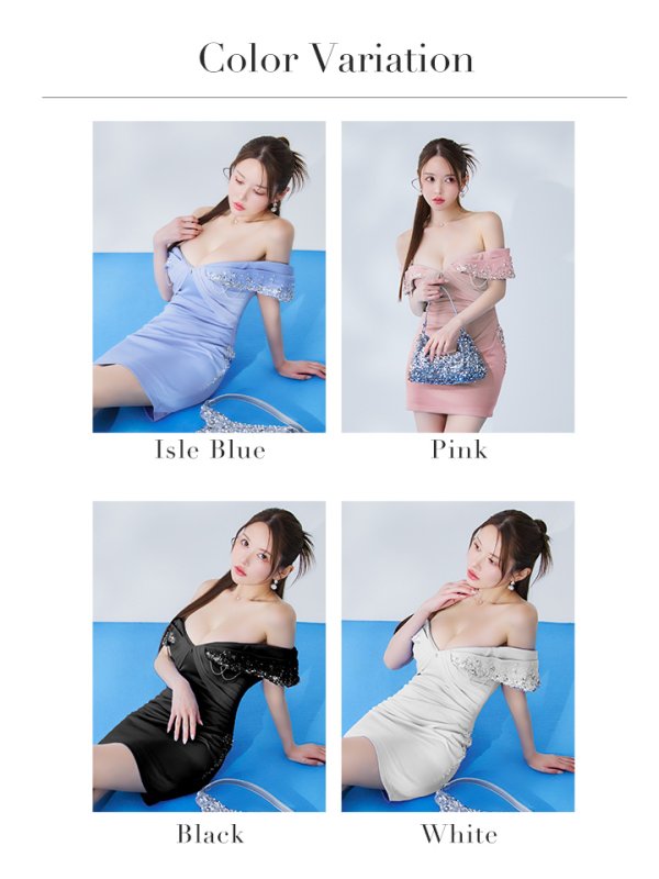 XSサイズあり【ANGEL R/エンジェルアール】オフショルダー/ ビジュー/ バストタック/ タイト/ マイクロミニドレス/ キャバドレス[OF2] [AR25833-ISLEBL-S250616]