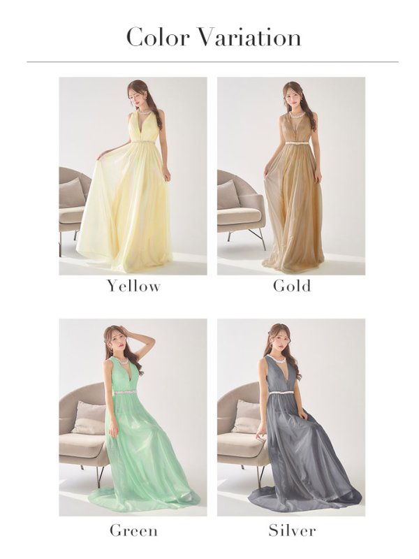 【Lip line/リップライン】ビジュー/ ラメ/ プリーツ/ ノースリーブ/ Vネック/ フレア/ Aライン/ ロングドレス/ キャバドレス long[HC03] [A-0207-GR-S2506]
