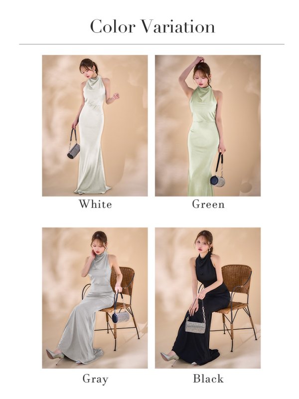 【ANGEL R/エンジェルアール】バックオープンデザイン/ ホルターネック/ ウエストマーク/ タイトロングドレス[OF2] [AR25226-W-S250620]