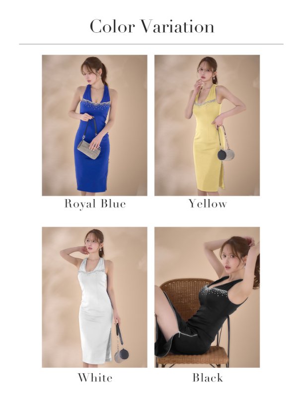 XSサイズあり【Veautt/ヴュート】【OF05】フロントビジュー/ ショルダータックデザイン/ サイドファスナー/ タイト/ ミディアムドレス/ キャバドレス [VT032506-Y-S250620]