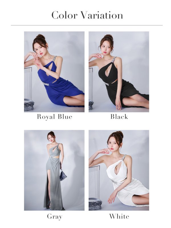 【ANGEL R/エンジェルアール】ワンショルダー/ バストカット/ アシンメトリー/ タック/ ビジュー/ タイト/ ロングドレス/ キャバドレス long[OF2] [AR25329-B-S250623]