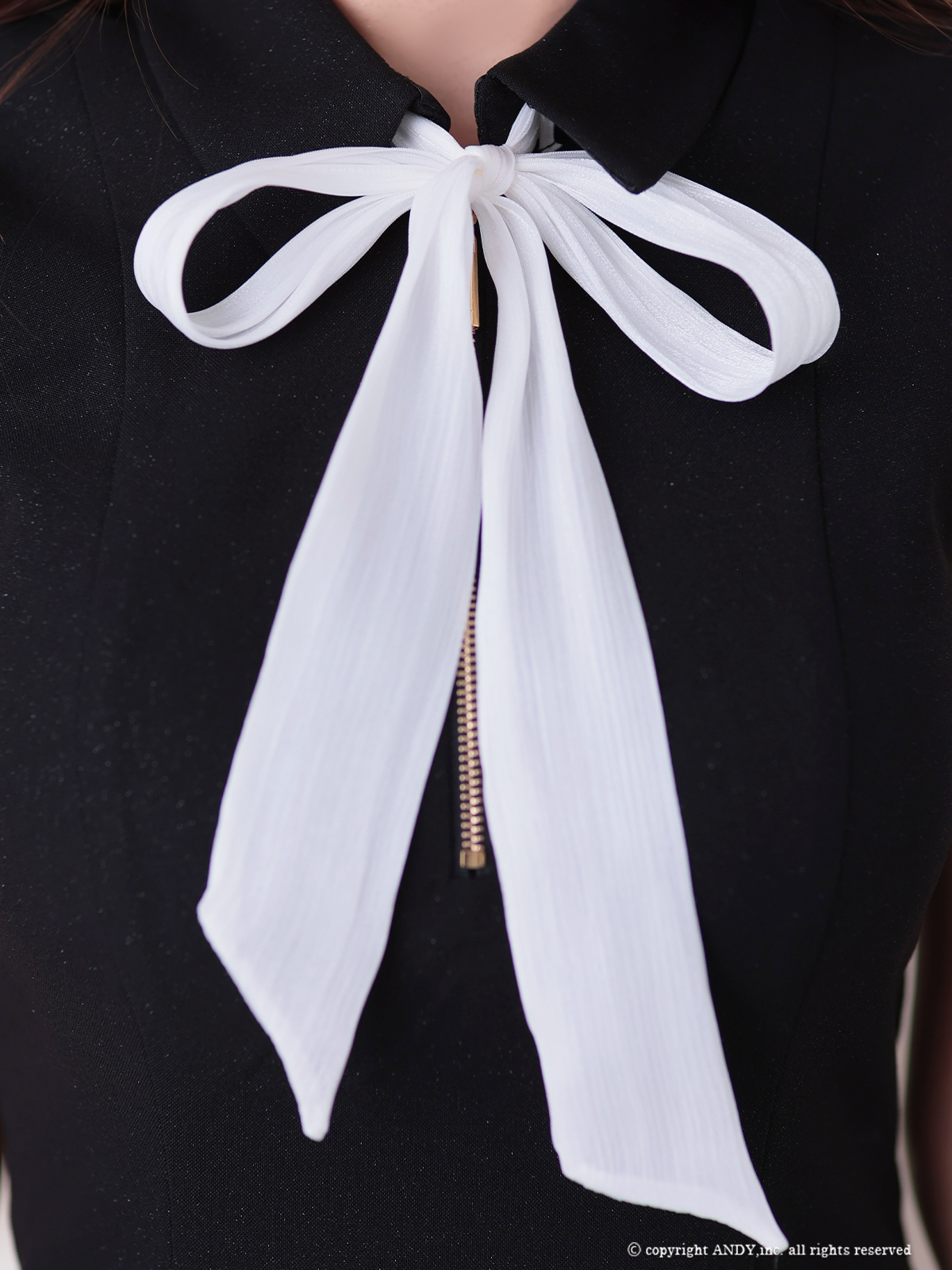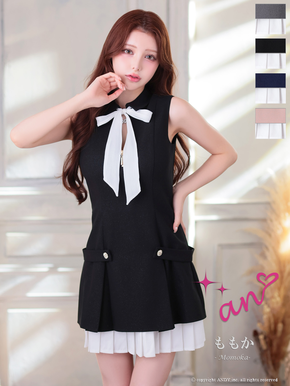 XSサイズあり【an /アン】襟付き/ ネックリボン/ バストジップ/ ノースリーブ/ バイカラー/ プリーツ/ ワンピース/ ミニドレス/ キャバドレス[OF05] [AOC3933-GYxW-2506]