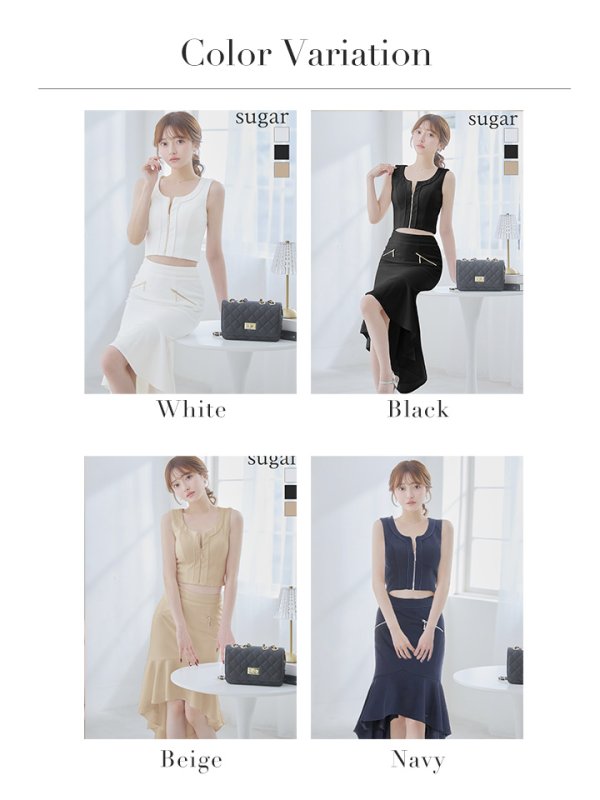 【Andy GLAMOROUS/アンディグラマラス】フロントジップ/ ストレッチ/ ノースリーブ/ フリル/ テールカット/ 膝丈/ セットアップ/ ミディアムドレス/ キャバドレス[OF05] [GMS-V855-NV-S250212]
