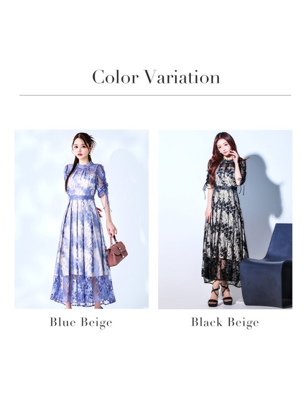 XLサイズあり【AMORA GRACE / アモーラグレース】 オケージョンドレス/ パーティードレス/ お呼ばれドレス/ パール付き/ ハイネック/ シアー/ レース/ ハーフスリーブ/ ミモレ丈/ ワンピース/ キャバドレス[OF05] [G60206HL-BLBE-S2506]