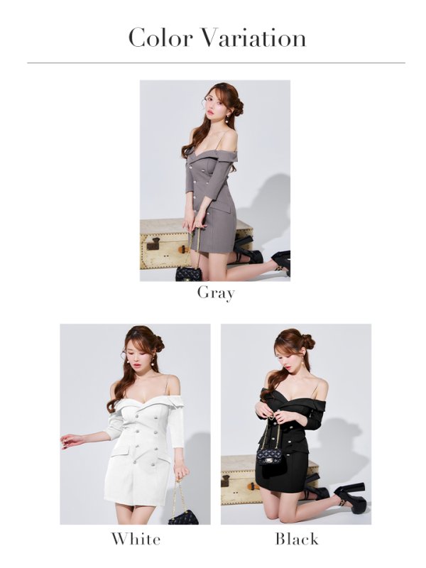 XSサイズあり【an /アン】ショルダービジュー/ ダブルボタン/ オフショル/ ハーフスリーブ/ ジャケット風/ タイト/ ミニドレス/ キャバドレス[OF05] [AOC3908-GY-S250628]