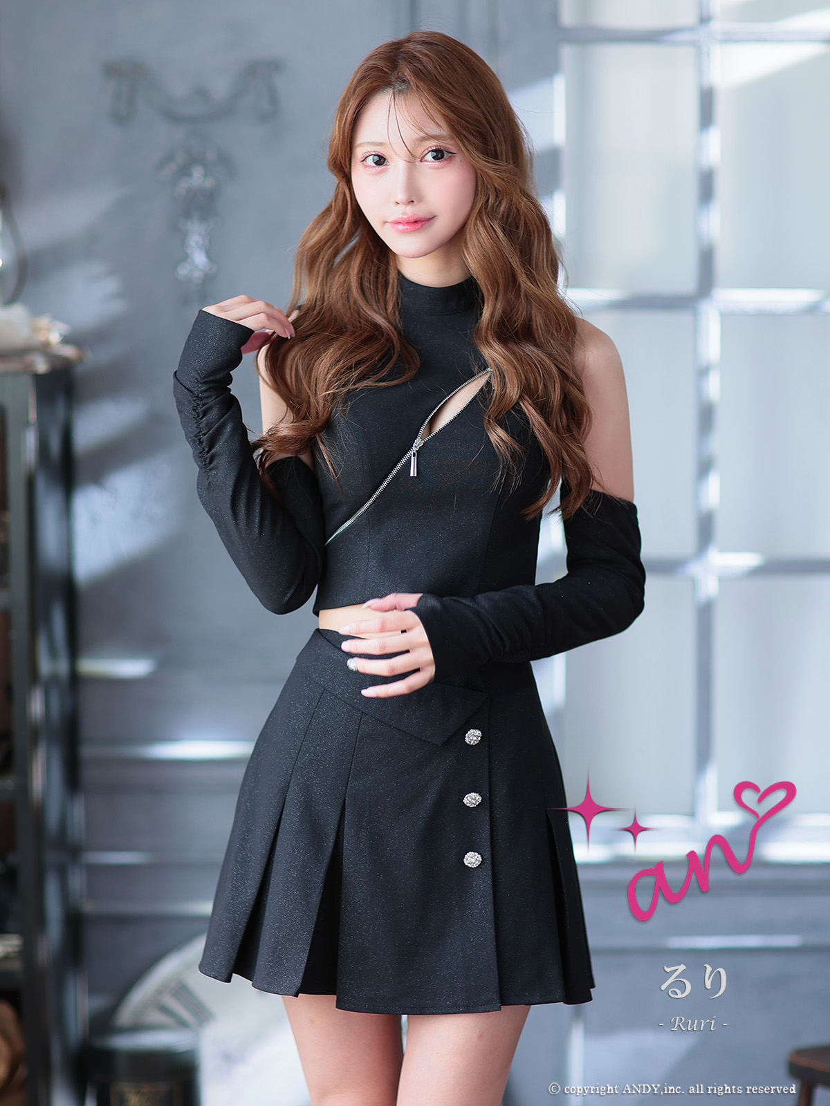 XSサイズあり【an /アン】袖付き/ ロングスリーブ/ ラメ/ ハイネック/ バストジップ/ プリーツ/ フレア/ セットアップ/ ミニドレス/ キャバドレス[OF05] [AOC3919-B-2506]
