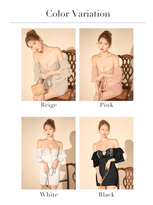 XSサイズあり【ANGEL R/エンジェルアール】ベアトップ/ バストカット/ メッシュ/ ビジュー/ リボン/ シフォン/ フレアスリーブ/ セットアップ/ タイト/ ミニドレス/ キャバドレス[OF2] [AR25332-B-S250705]