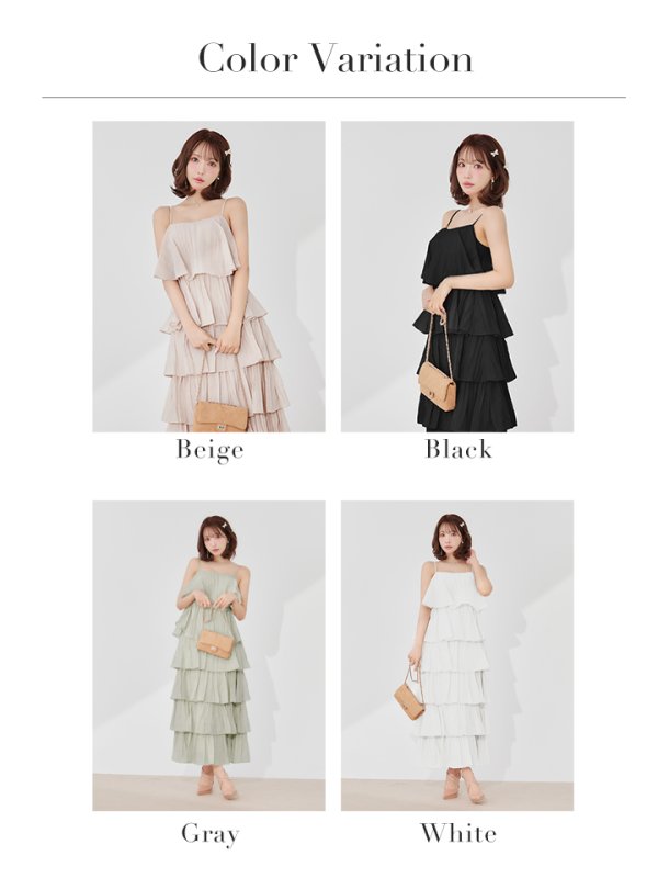 繊細なティアードデザインが目を惹くロングドレス。