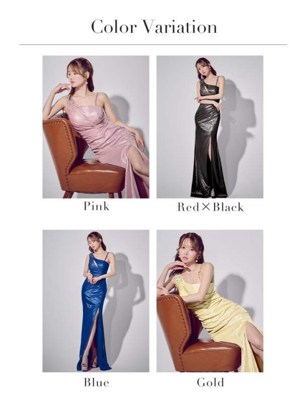 【Lip line/リップライン】アシメショルダー/ ラメ/ バストカット/ シアー/ スリット/ ロングドレス/ キャバドレス long[HC03] [A-0218-BL-S2507]