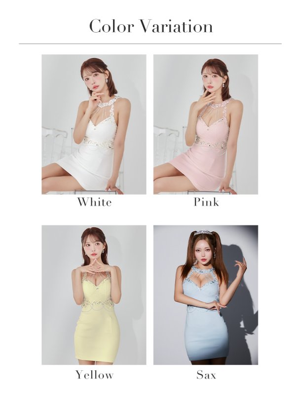 XSサイズあり【ANGEL R/エンジェルアール】ホルターネック/ フラワーレース/ ビジュー/ メッシュ/ タイト/ マイクロミニドレス/ キャバドレス[OF2] [AR25331-Y-S250712]