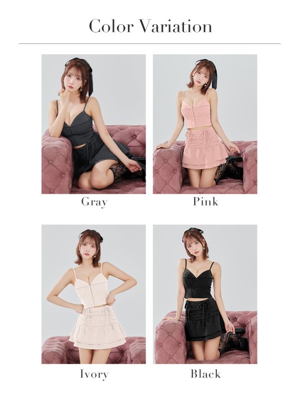 XSサイズあり【ROBE de FLEURS/ローブドフルール】フロントボタン/ サイドリボン/ セットアップ/ ミニドレス/ キャバドレス[OF08] [FM4305-GY-S250716]
