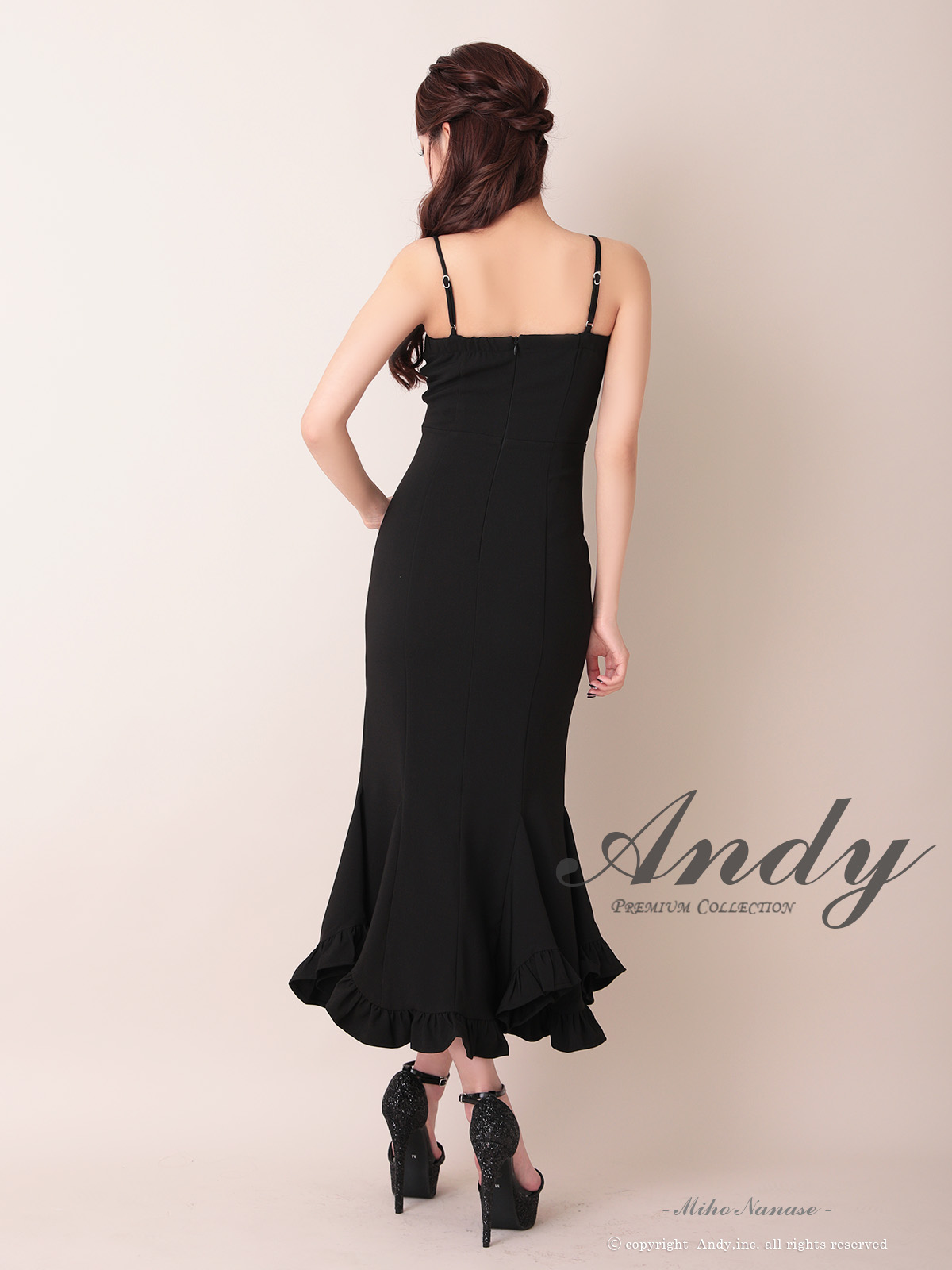 【ANDY/アンディ】 シンプル/ ワンカラー/ バストシアー/ キャミソール/ 裾フリル/ スリット/ マーメイド/ ミディアムドレス/ キャバドレス[OF05] [ON2959-RBL-2507]