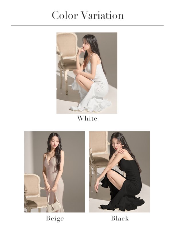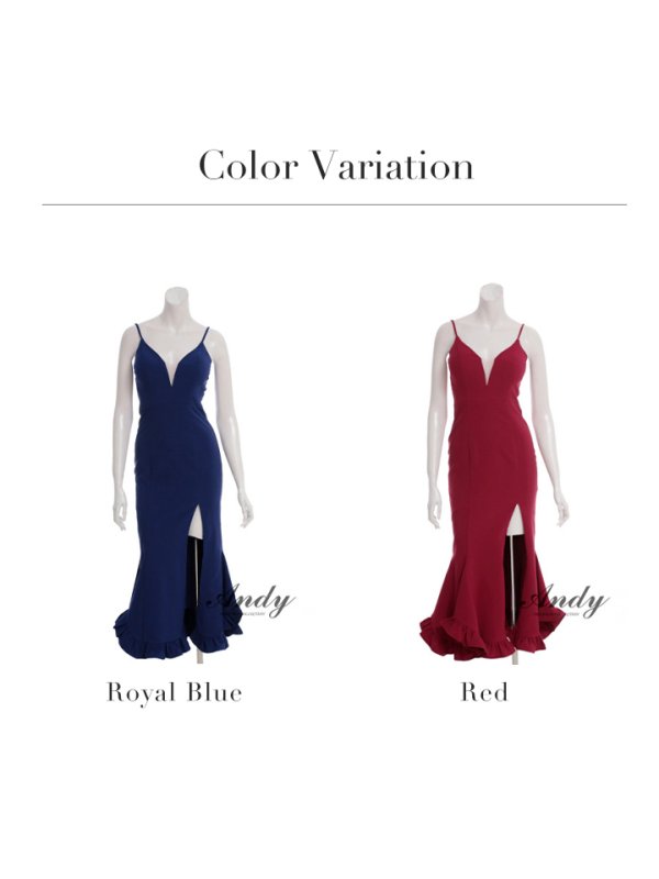 【ANDY/アンディ】 シンプル/ ワンカラー/ バストシアー/ キャミソール/ 裾フリル/ スリット/ マーメイド/ ミディアムドレス/ キャバドレス[OF05] [ON2959-W-S250718]