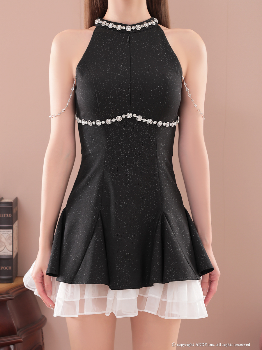 XSサイズあり【an /アン】ビジュー/ バストジップ/ チェーン/ アメスリ/ フリル/ バイカラー/ フレア/ ミニドレス/ キャバドレス[OF05] [AOC3941-W-2507]