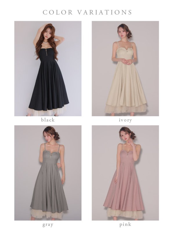 XS-Lサイズあり【DEA./ディア】チュール/ レイヤード/ センタージップ/ フレア/ ミディアムドレス/ キャバドレス long[OF08]【一部予約商品/1月中旬発送予定】 [DE3469-B-2507]