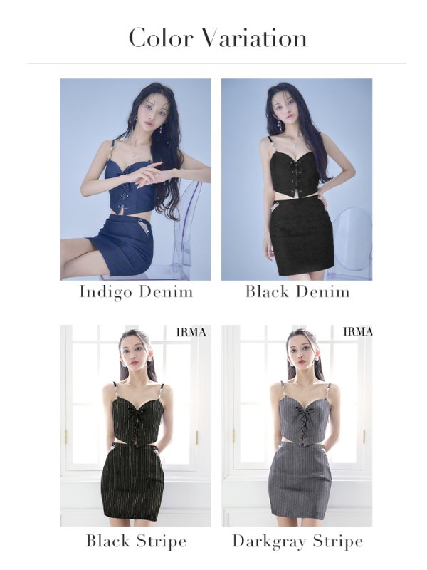 XSサイズあり【IRMA/イルマ】キャミ/ 編み上げ/ デニム/ バストリボン/ シースルー/ タイト/ セットアップ/ ミニドレス/ キャバドレス[OF2A] [55075-IR-Bdenim-S250724]
