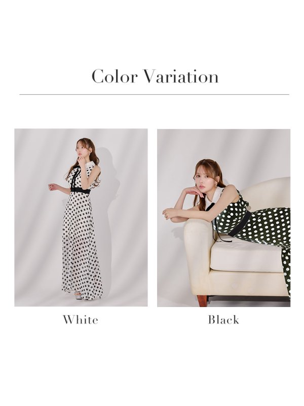 【VELIQUE/ヴェリーク】 襟付き/ ネックリボン/ ドット柄/ ノースリーブ/ Aライン/ フレア/ ロングドレス/ キャバドレス long【HC02】 [BYRS-220-W-S2507]