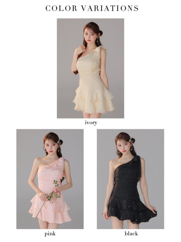 【朝日向まり/関西コレクション着用】XSサイズあり【ROBE de FLEURS/ローブドフルール】サテン/ ワンショルダー/ リボン/ ティアード/ フレア/ ミニドレス/ キャバドレス[OF08] [FM4322-IV-S250806]