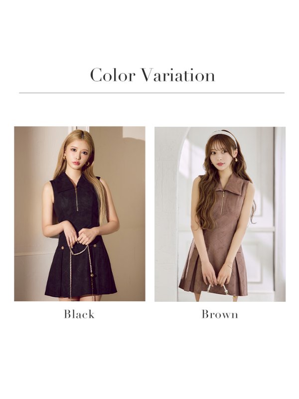 【ななにー/関西コレクション着用】XSサイズあり【DEA./ディア】スエード/ ジップ/ カラー/ フレア/ ワンピース/ ミニドレス/ キャバドレス[OF08] [DE3458-BR-S250806]