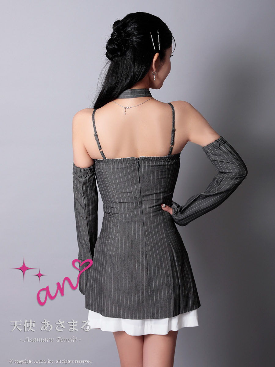 XSサイズあり【an/アン】マルチway/ ネクタイ付き/ 袖付き/ オフショル/ キャミ/ ストライプ柄/ レイヤード/ フレア/ ワンピース/ ミニドレス/ キャバドレス[OF05] [AOC3959-BxW-2508]