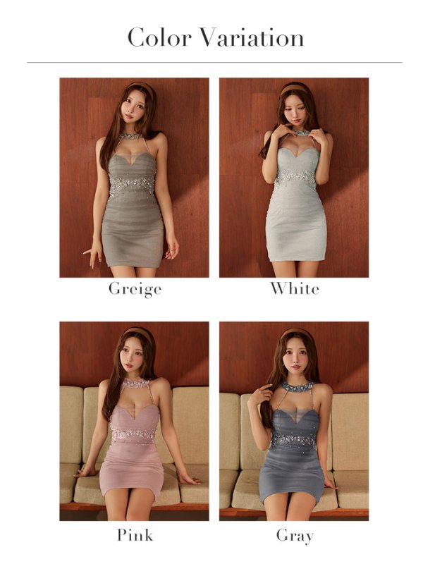 【ANGEL R/エンジェルアール】ホルターネック/ フラワーレース/ ビジュー/ メッシュ/ ラメ/ タイト/ マイクロミニドレス/ キャバドレス[OF2] [AR25845-GYGE-S250805]