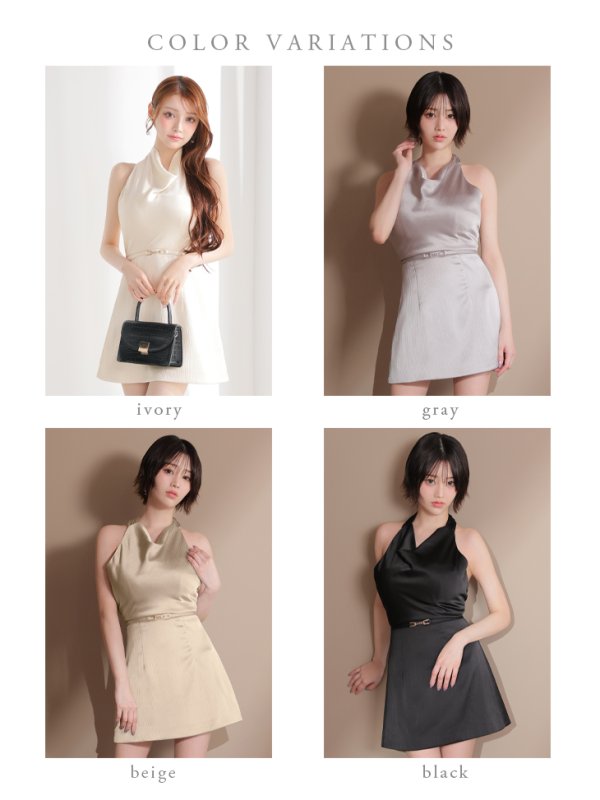 【りの/関西コレクション着用】XSサイズあり【DEA./ディア】サテン/ ドレープ/ ホルターネック/ ベルト/ミニドレス/ キャバドレス[OF08] [DE3376-B-S250808]