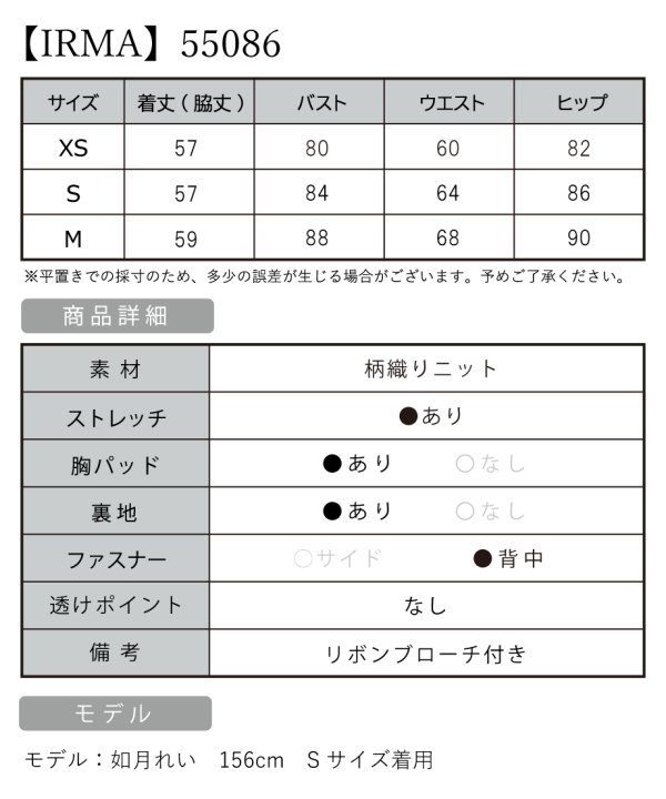 B:84 / W:64 / H:86 [着丈](脇下):約57cm |