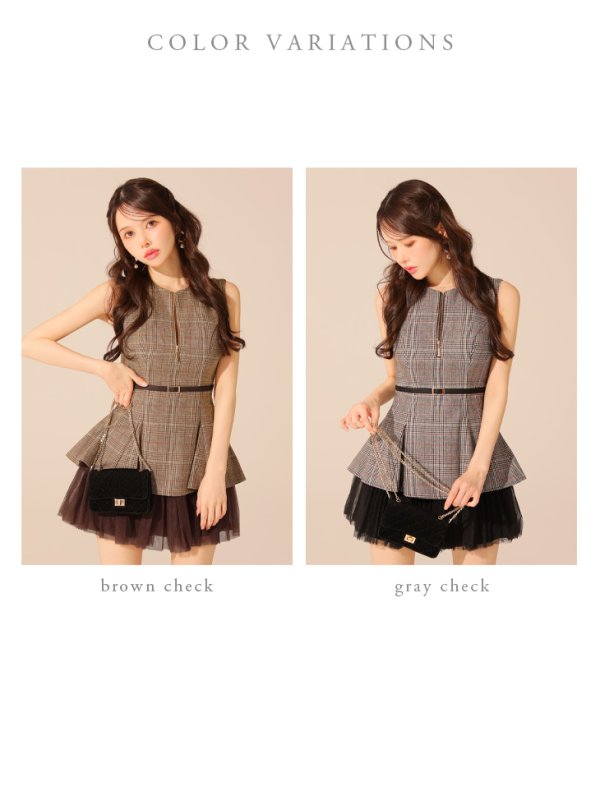 XSサイズあり【DEA./ディア】チェック/ ノースリーブ/ ベルトデザイン/ チュール/ フレア/ ワンピース/ ミニドレス/ キャバドレス[OF08] [DE3477-BRck-2508]