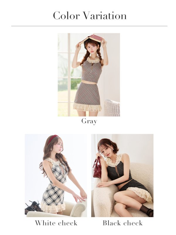 【予約商品/1月上旬発送予定】XSサイズあり【ROBE de FLEURS/ローブドフルール】レース/ チェック/ バストジップ/ セットアップ/ ミニドレス/ キャバドレス[OF08] [FM4222-Wcheck-S250807]