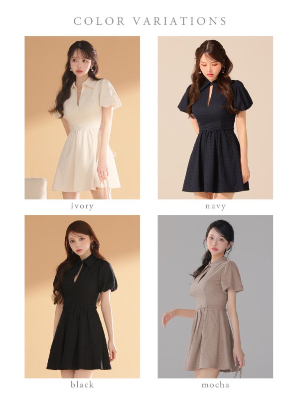 【うづきふうか/関西コレクション着用】XSサイズあり【DEA./ディア】ワッフル素材/ クラシカル/ 襟付き/ フレア/ ミニドレス/ キャバドレス[OF08] [DE4319-MOC-S250808]
