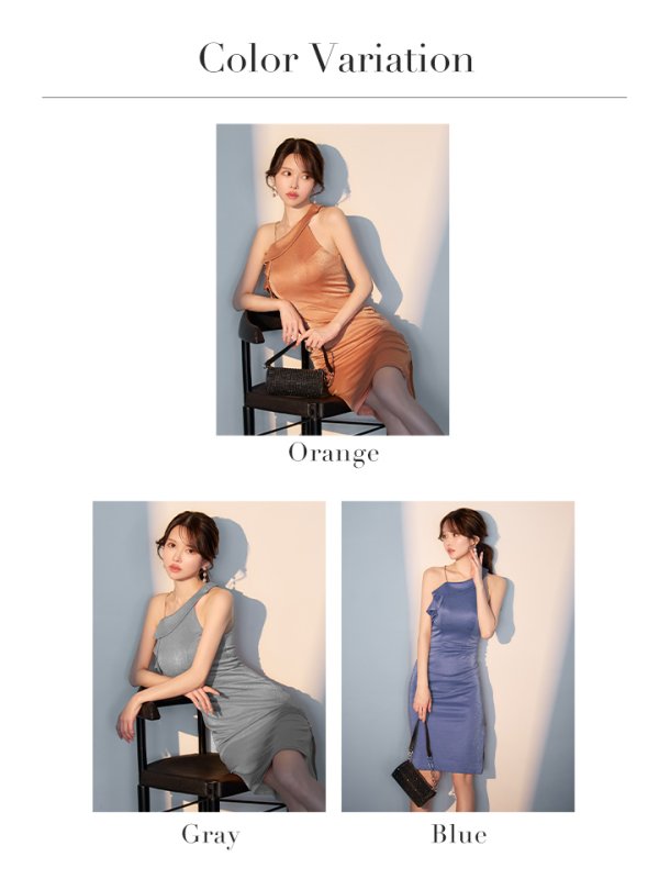 アシンメトリーなワンショルダーデザインが、スタイリッシュで洗練された印象に。