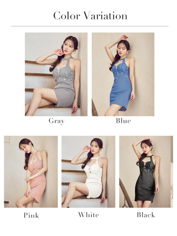 【ANGEL R/エンジェルアール】ホルターネック/ フラワーレース/ ビジュー/ パールチェーン/ メッシュ/ バストカット/ タイト/ ミニドレス/ キャバドレス[OF2] [AR25336-W-S250812]