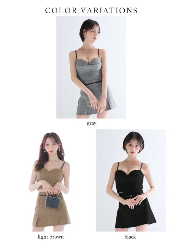 XSサイズあり【Glossy/グロッシー】キャミ/ ヘリンボーン/ レザーベルトデザイン/ セットアップ/ ミニドレス/ キャバドレス[OF08] [GL4314-GY-2508]