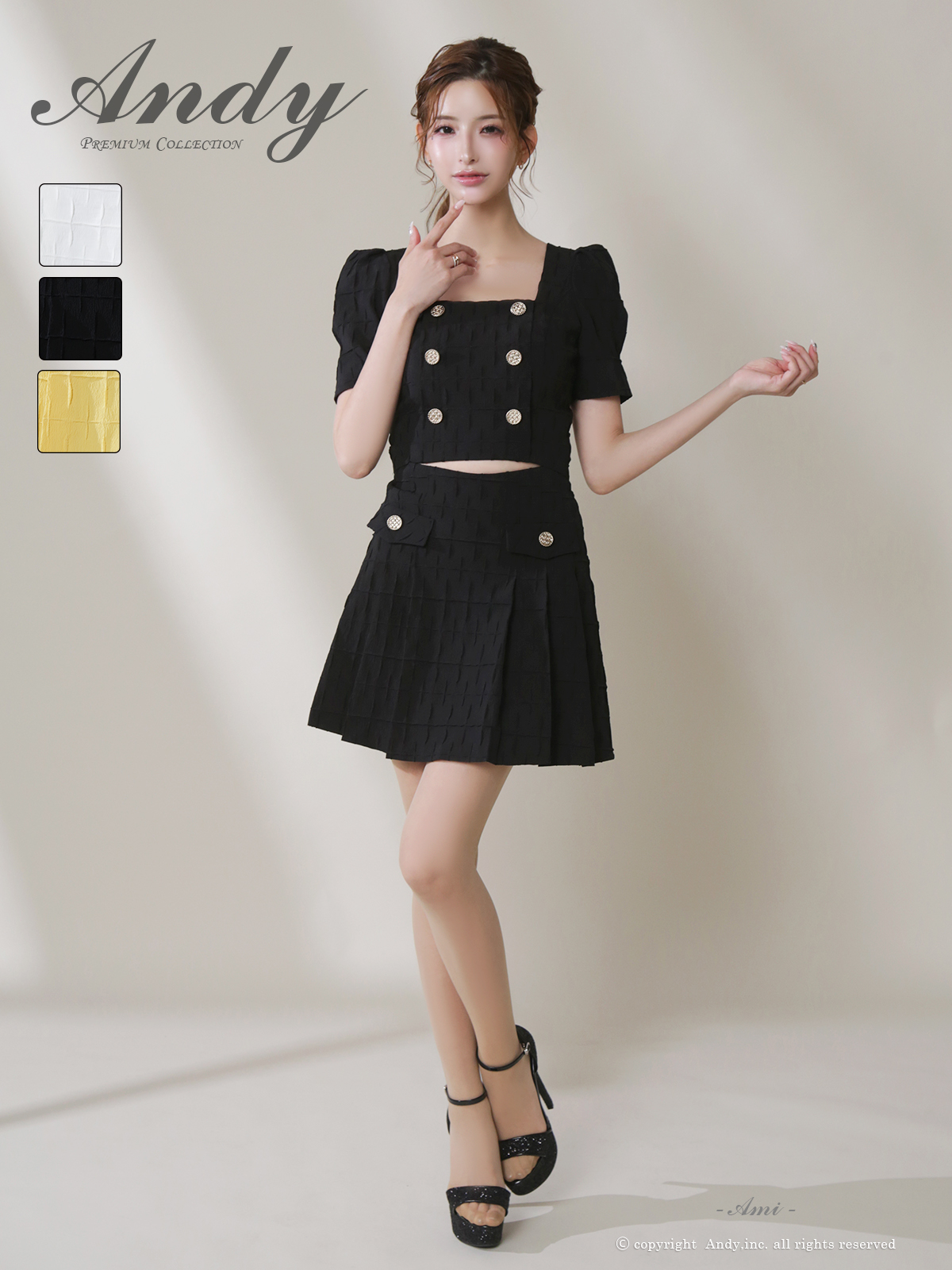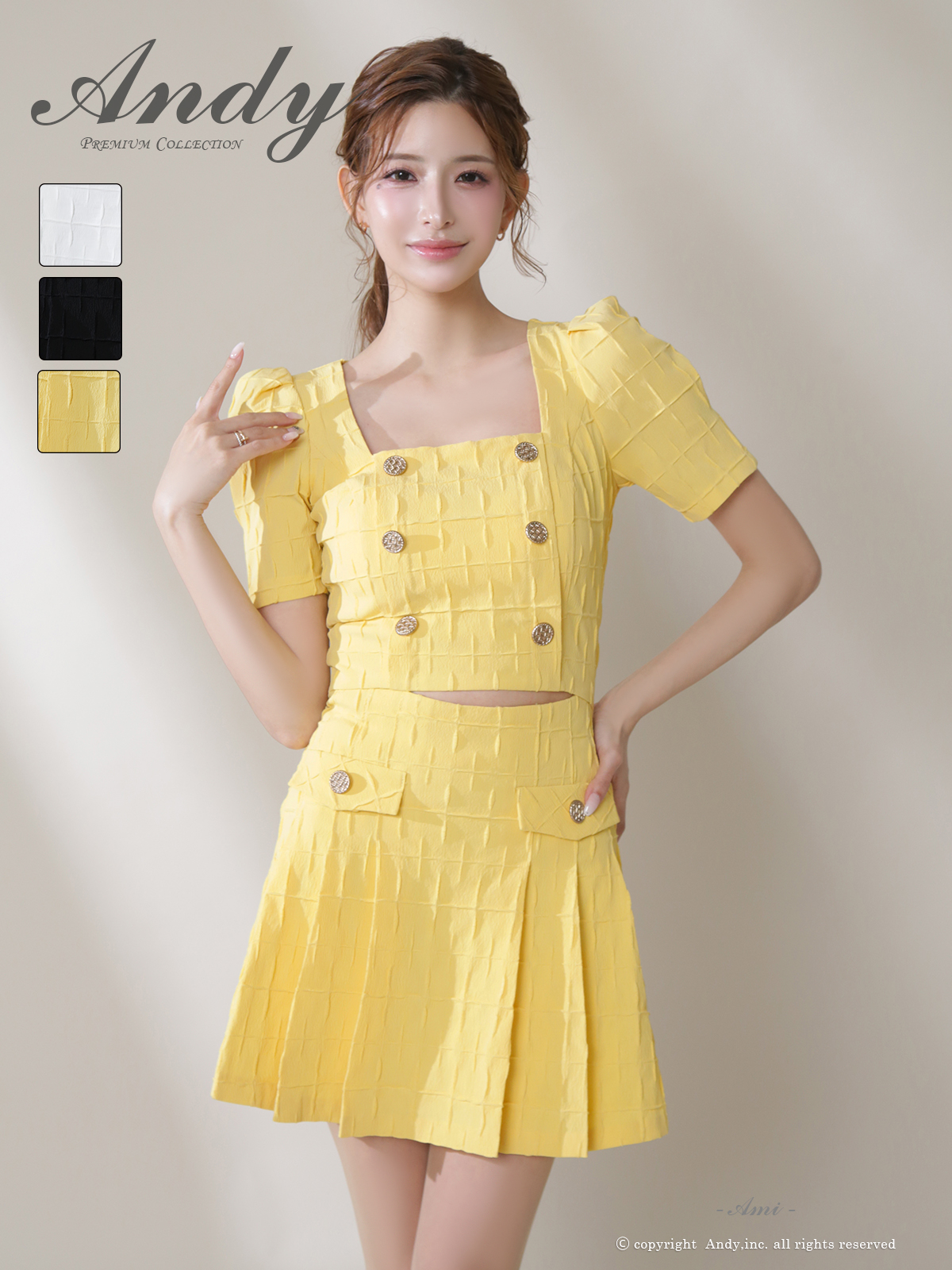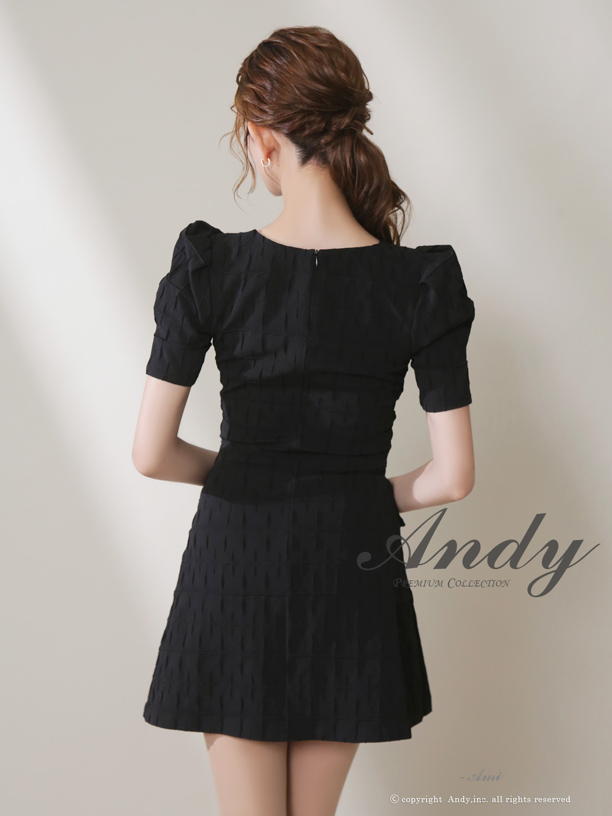 XSサイズあり【ANDY/アンディ】パワショル/ ウエストカットアウト/ ハーフスリーブ/ ジャガード/ プリーツ/ ミニドレス/ キャバドレス[OF05] [OK2969-B-2508]