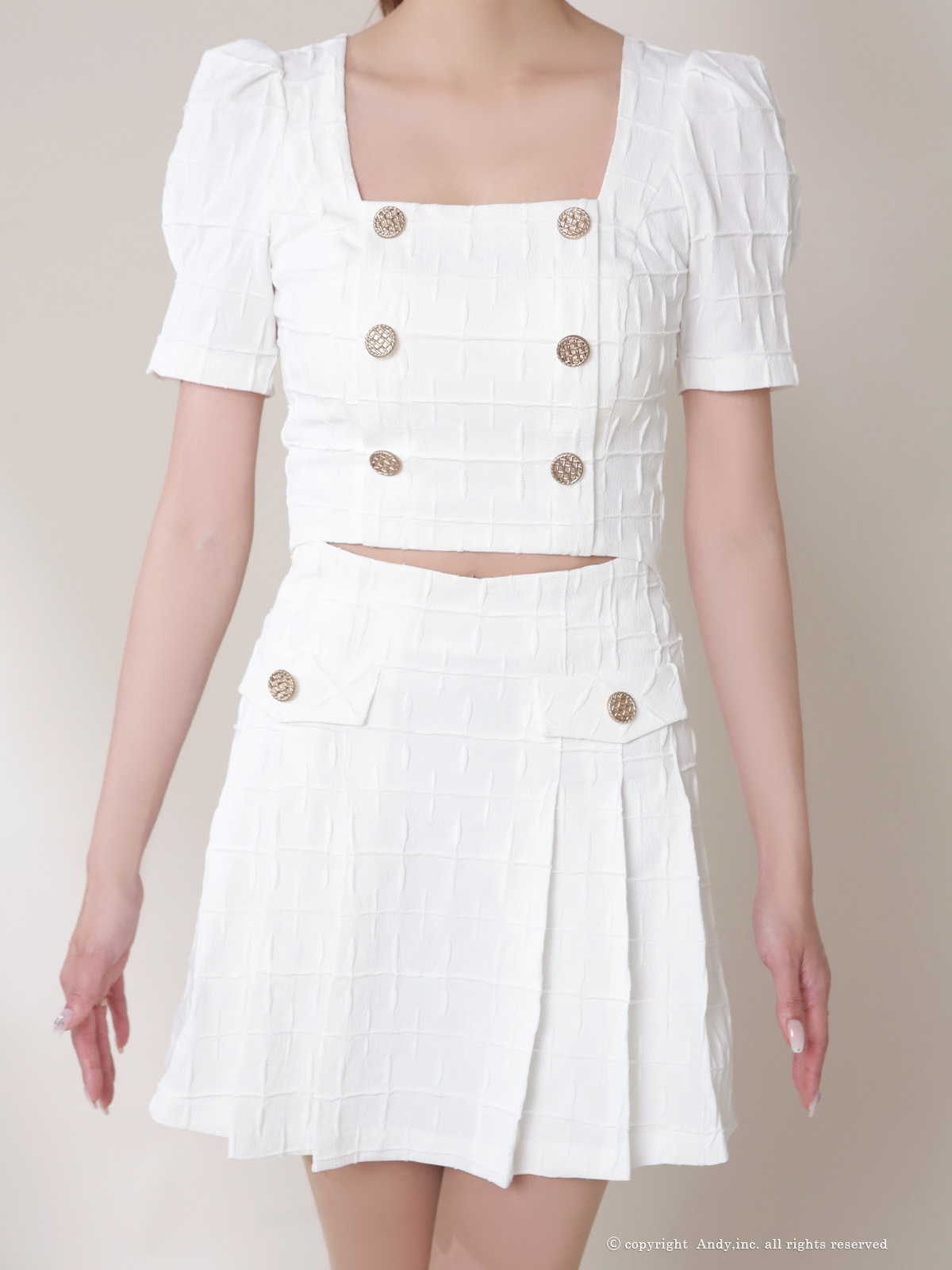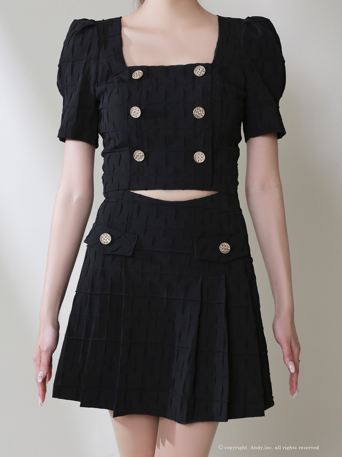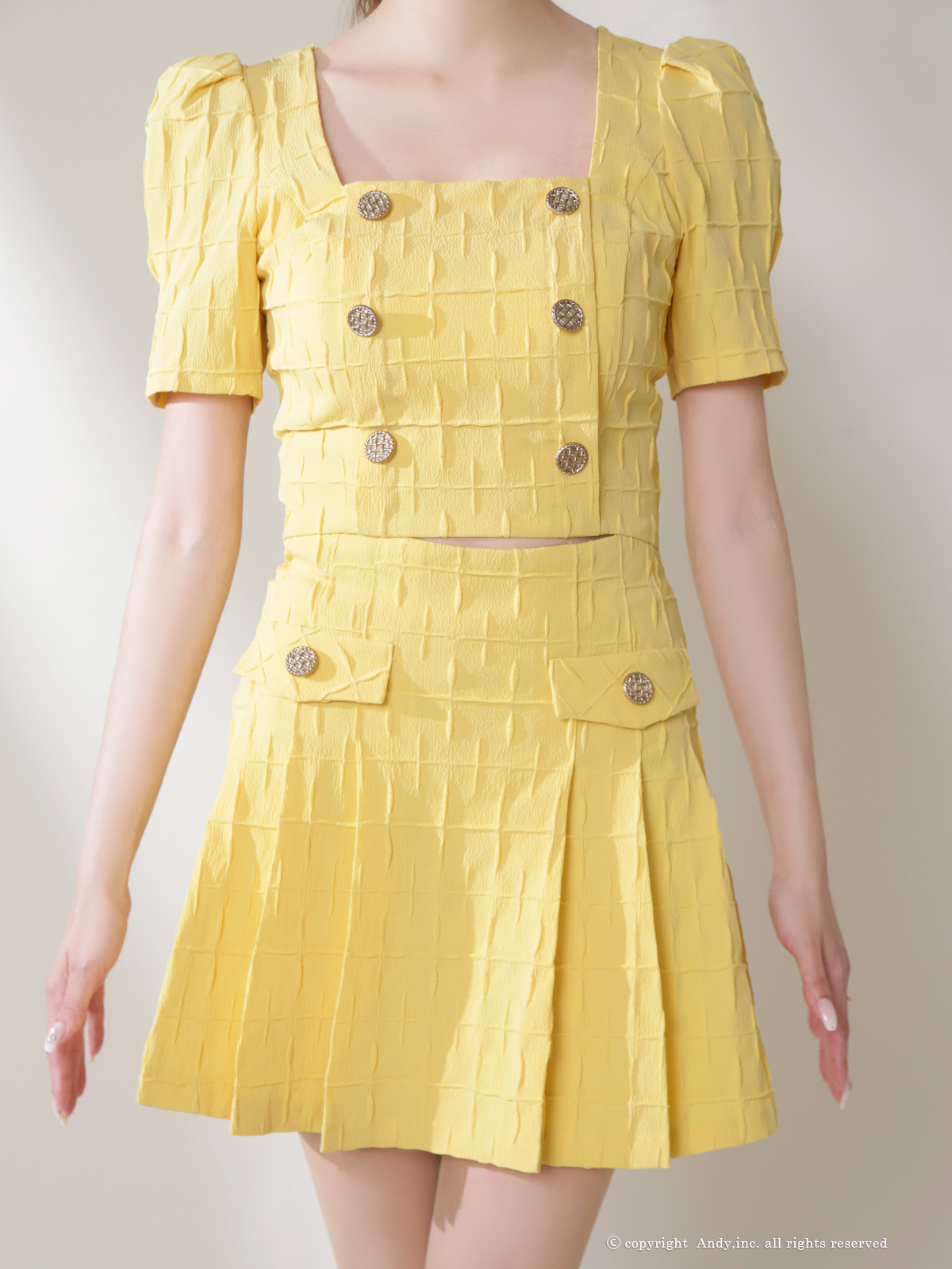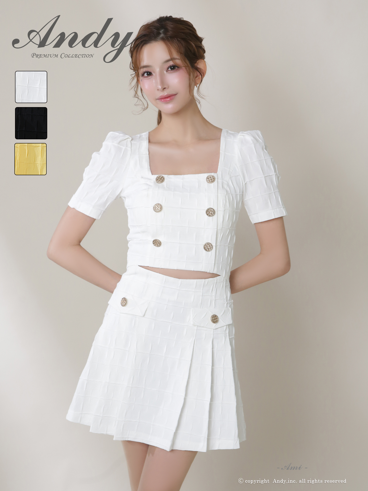 XSサイズあり【ANDY/アンディ】パワショル/ ウエストカットアウト/ ハーフスリーブ/ ジャガード/ プリーツ/ ミニドレス/ キャバドレス[OF05] [OK2969-B-2508]