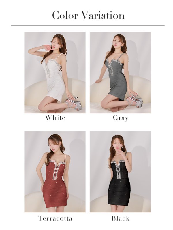 【Jessica/ジェシカ】パール/ ビジュー/ バストジップ/ ラメ/ キャミソール/ セットアップ/ タイト/ ミニドレス/ キャバドレス【HC03】 [JS5323-TRC-S2508]