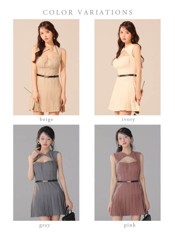XSサイズあり【DEA./ディア】バストカット/ ベルト/ フィンプリーツ/ セミフレア/ ミニドレス/ キャバドレス[OF08] [DE3398-BE-S250818]