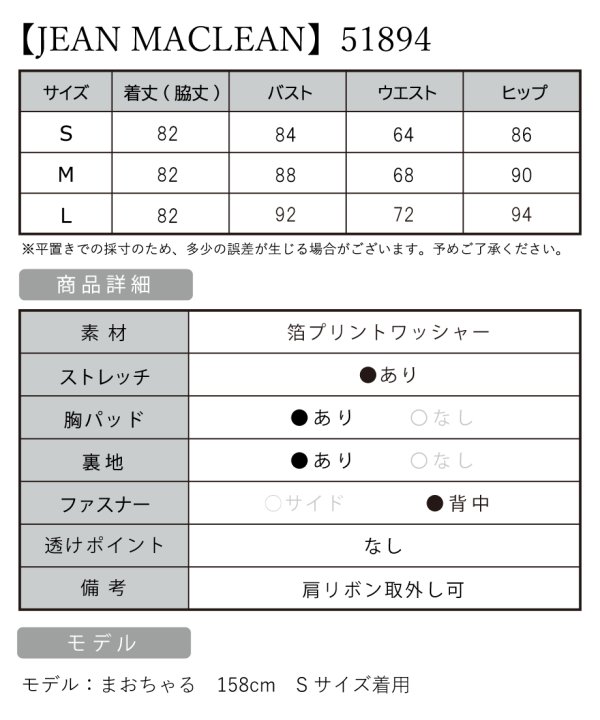 B:84 / W:64 / H:86 [着丈](脇下)約82cm |