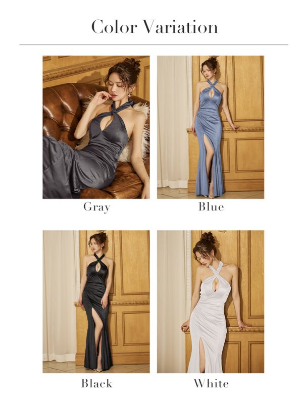 Lサイズあり【Glossy/グロッシー】クロスホルター/ ストレッチサテン/ マーメイド/ ロングドレス/ キャバドレス[OF08] [GL3948-GY-S250820]