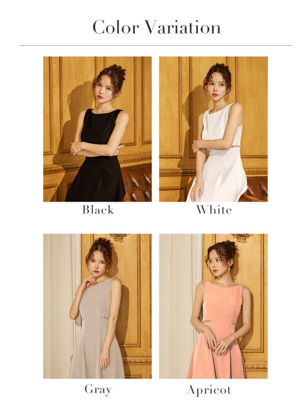 さり気ないパール装飾がアクセントになり、ふんわりAラインスカートがフェミニンなシルエットを演出◎