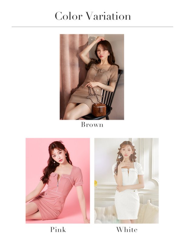 sugarオリジナルカラー・XSサイズあり【IRMA/イルマ】フロントジップ/ 半袖/ 袖あり/ タイト/ ミニドレス/ キャバドレス[OF2A] [51755-IR-BR-S250821]