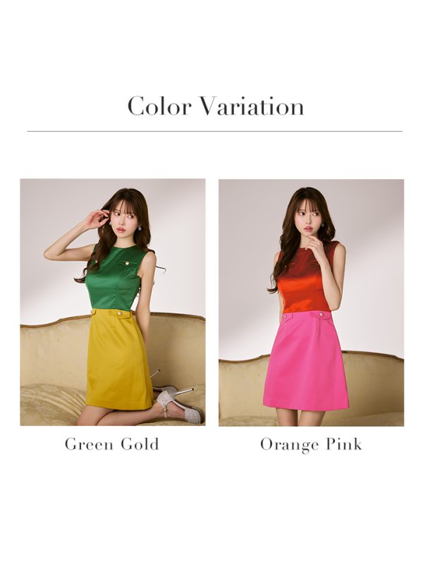 【VELIQUE/ヴェリーク】バイカラー/ ハイウエスト/ 切替/ ノースリーブ/ Aライン/ ワンピース/ ミニドレス/ キャバドレス【HC02】 [BYRS-222-ORxP-S2508]