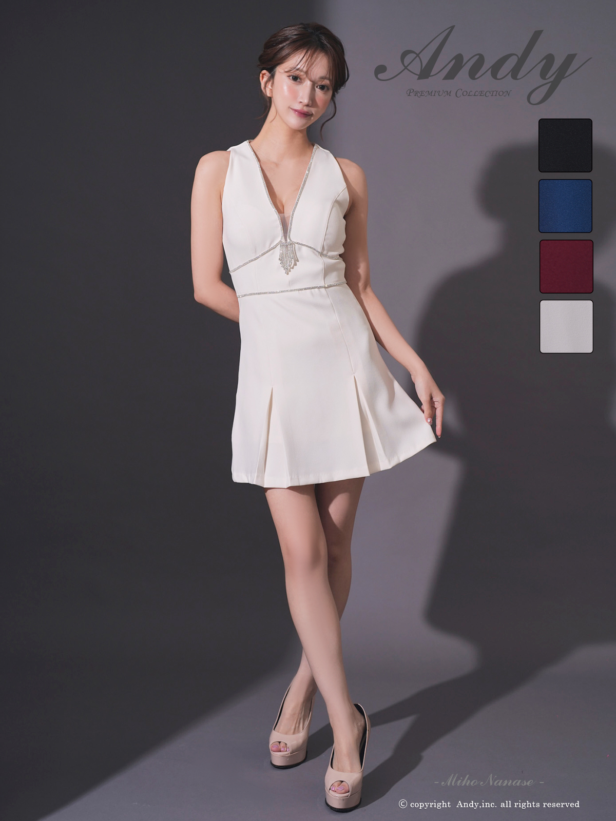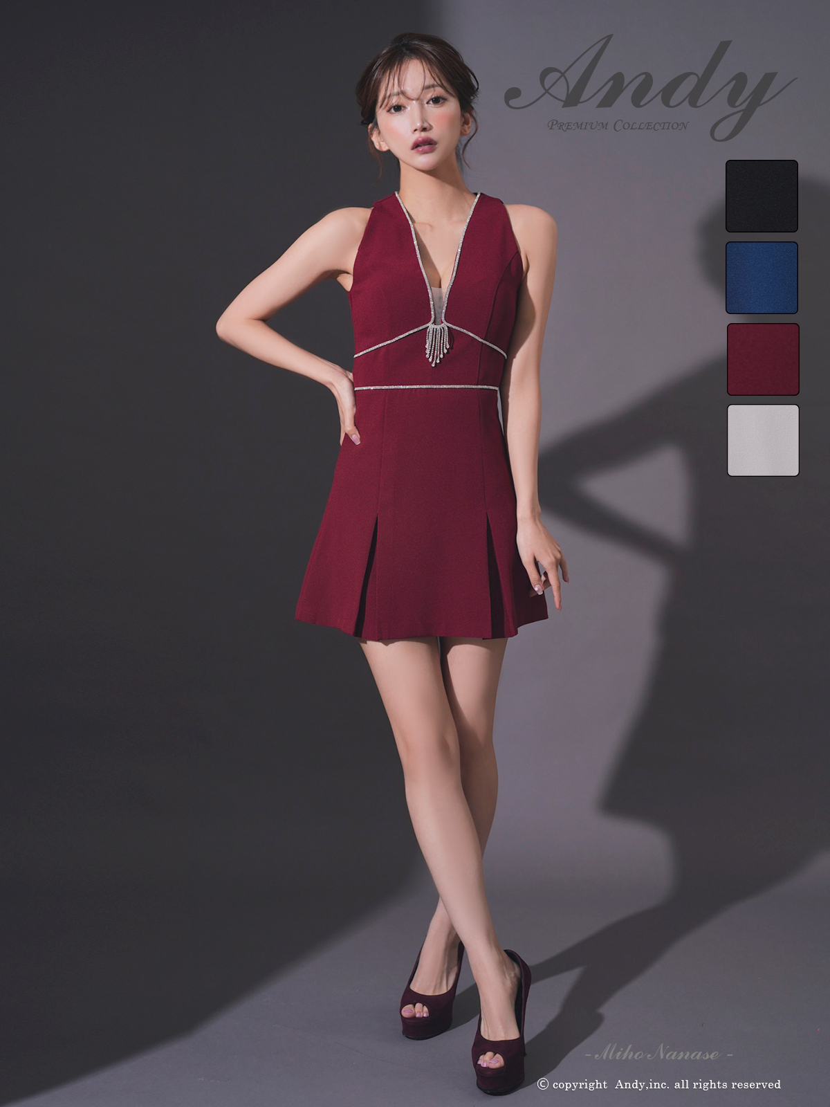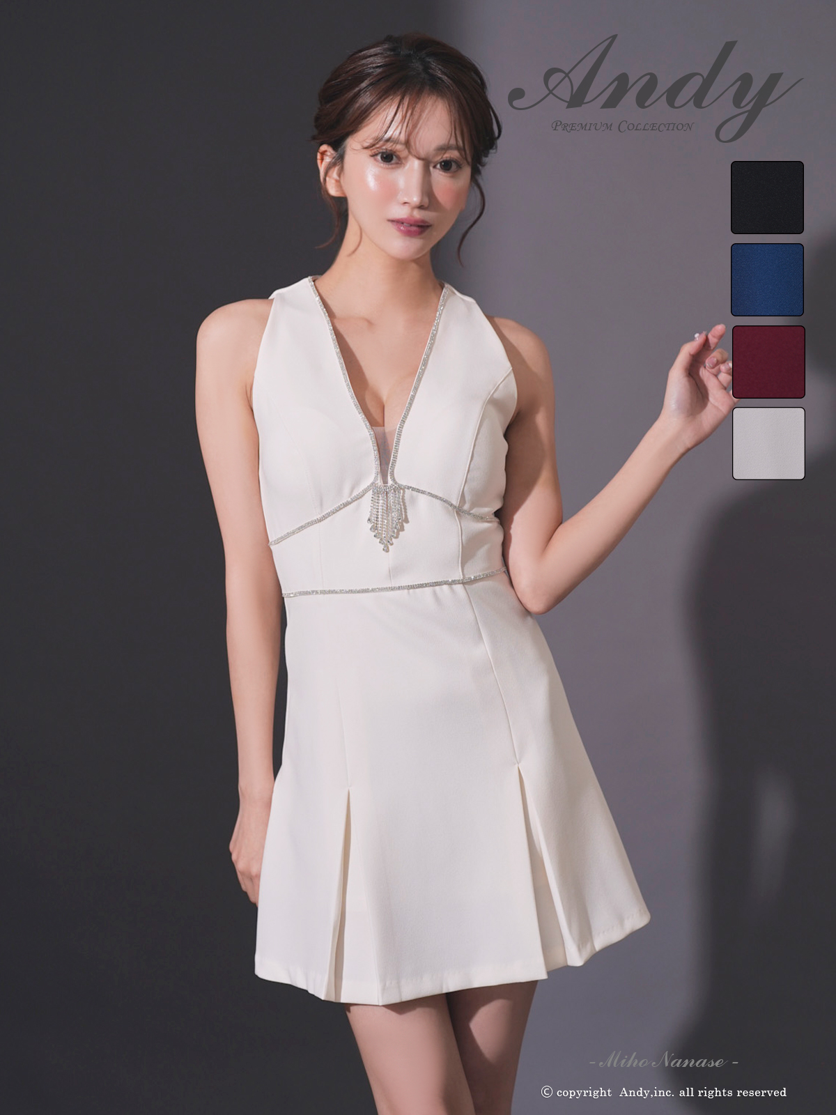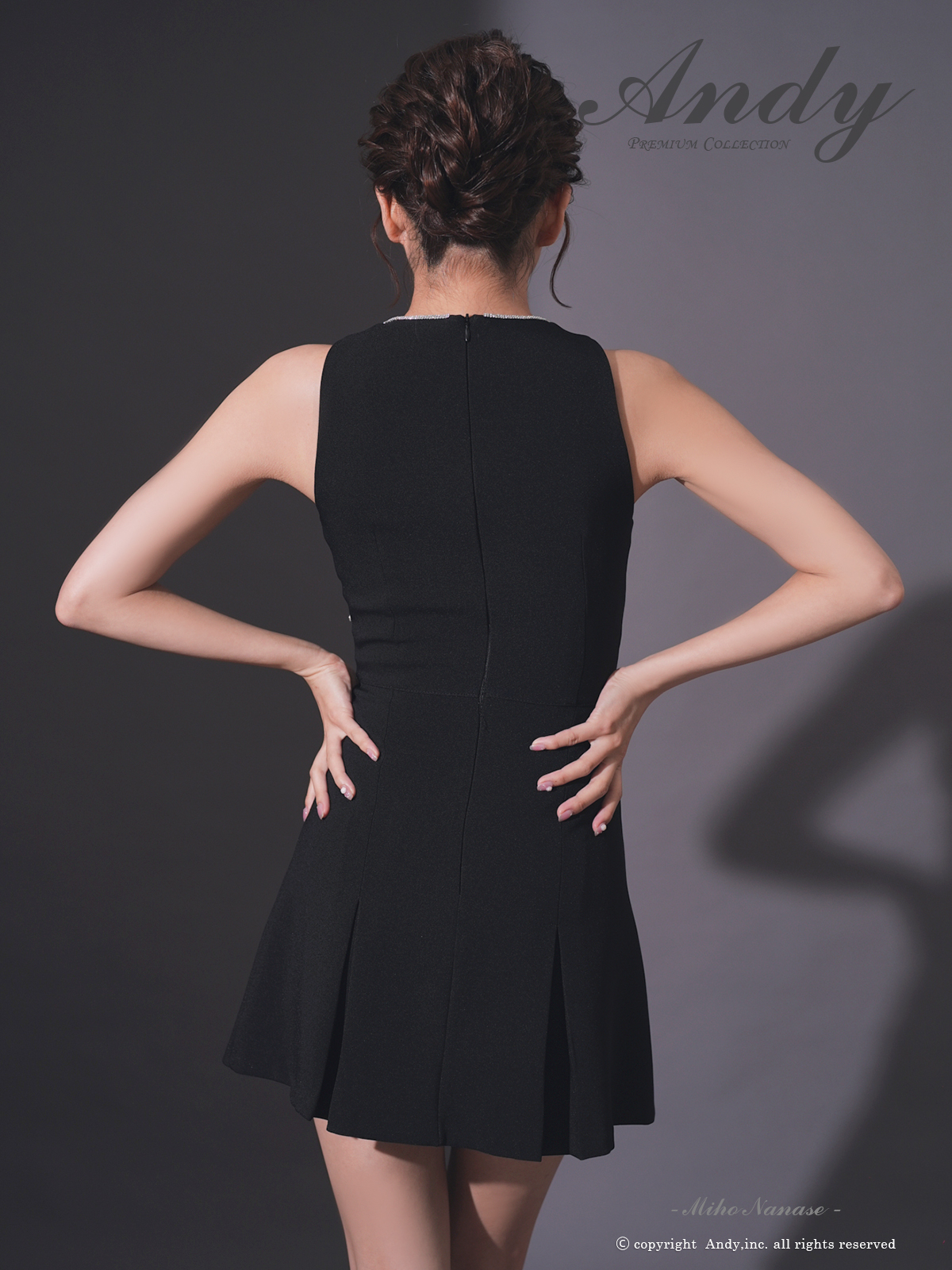 【ANDY/アンディ】大人シンプルなワンカラーに上品に煌めくビジューラインがラグジュアリーなミニドレス♡