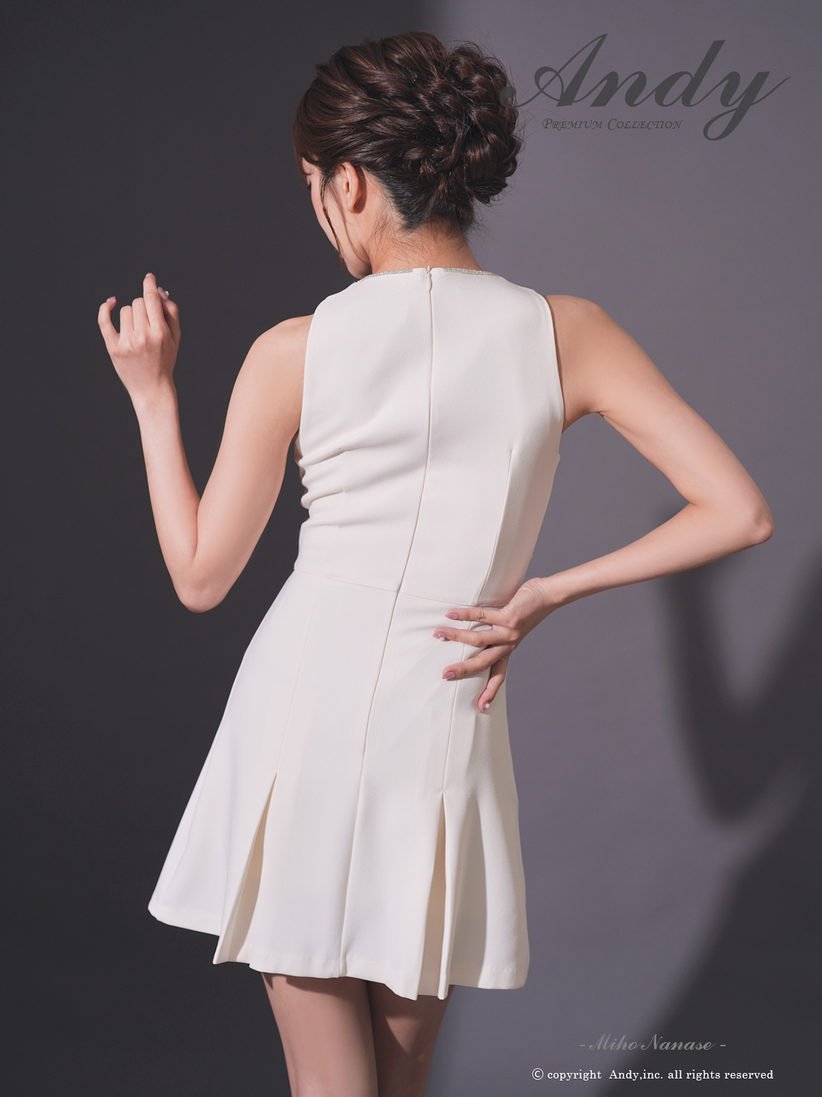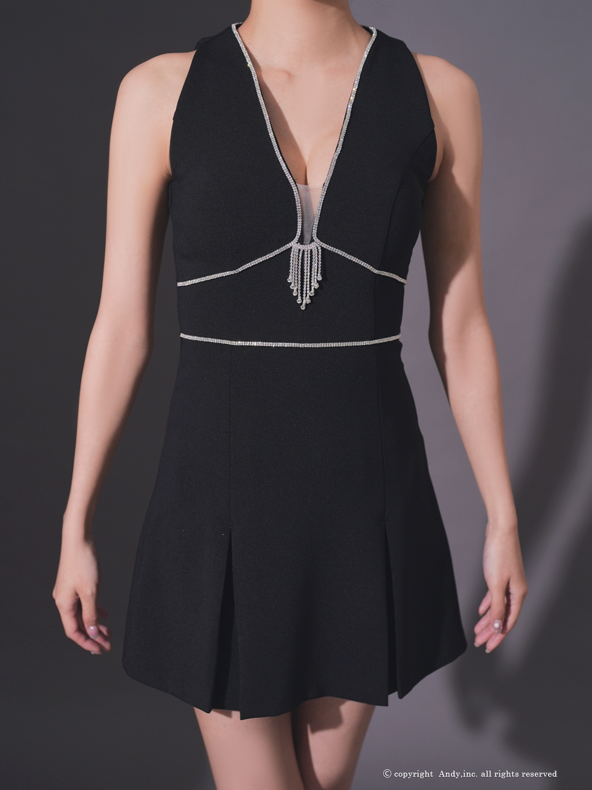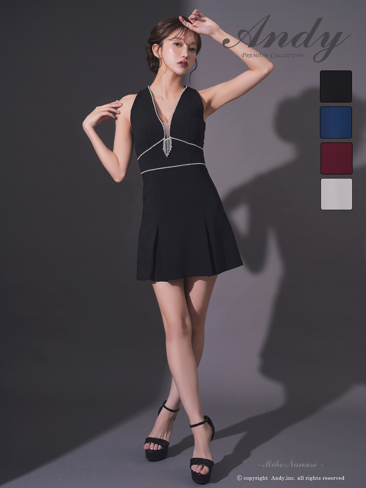 【ANDY/アンディ】大人シンプルなワンカラーに上品に煌めくビジューラインがラグジュアリーなミニドレス♡
