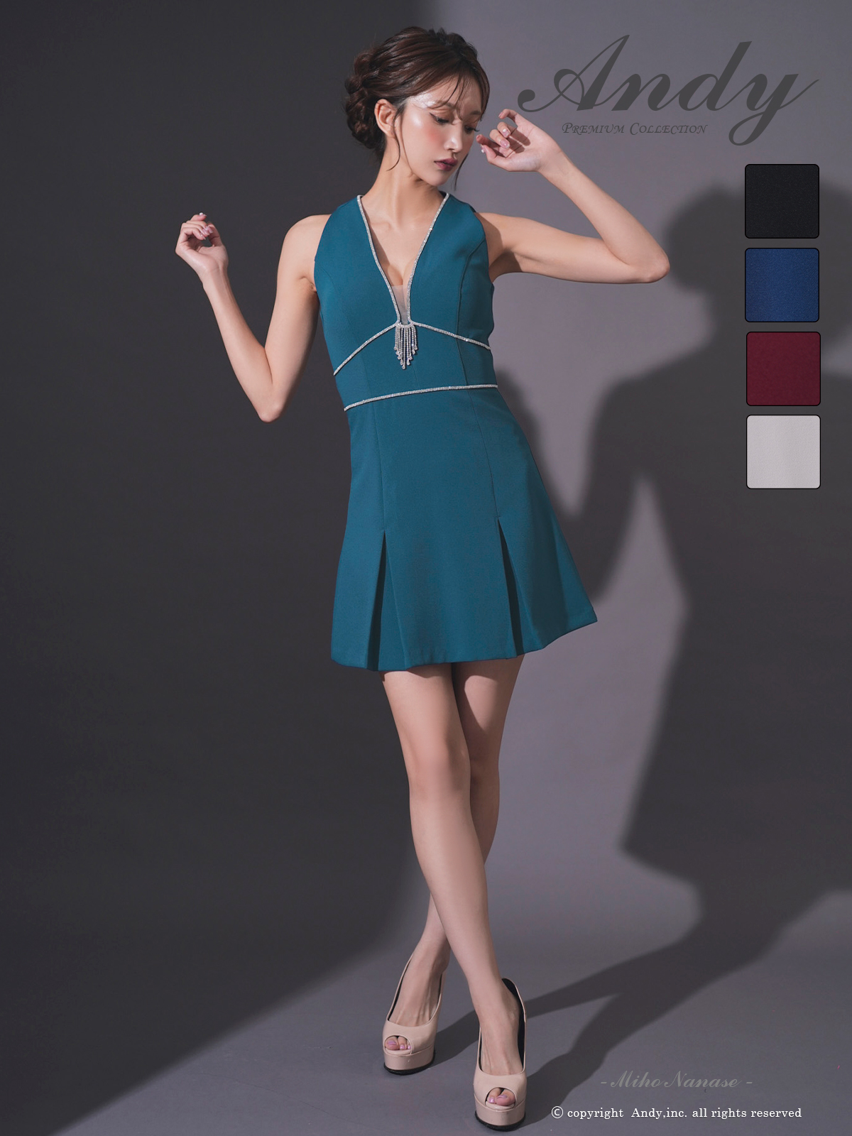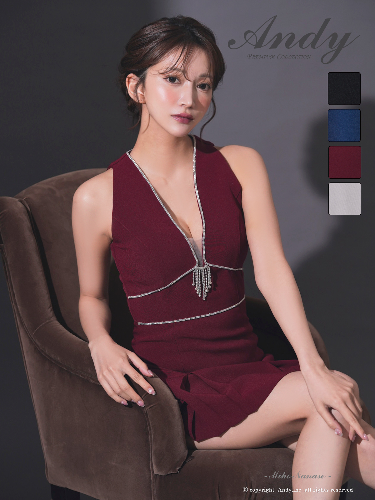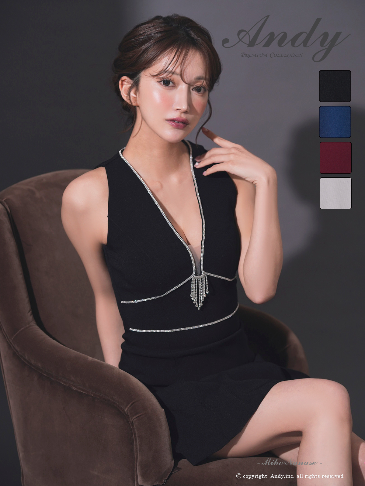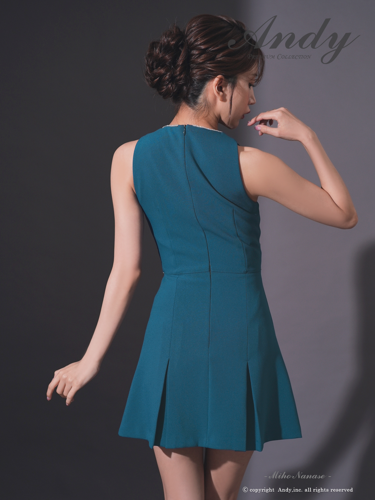 【ANDY/アンディ】大人シンプルなワンカラーに上品に煌めくビジューラインがラグジュアリーなミニドレス♡