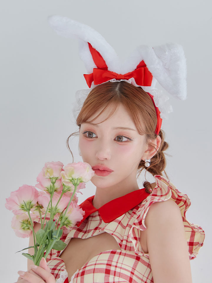 チェック れっど 赤 くろ 黒 セットアップ ツーピース 2ピース タイツ あざと 甘い スイート バニー うさぎ ウサギ 兎 アニマル 動物 あにまる カフス 病み 闇