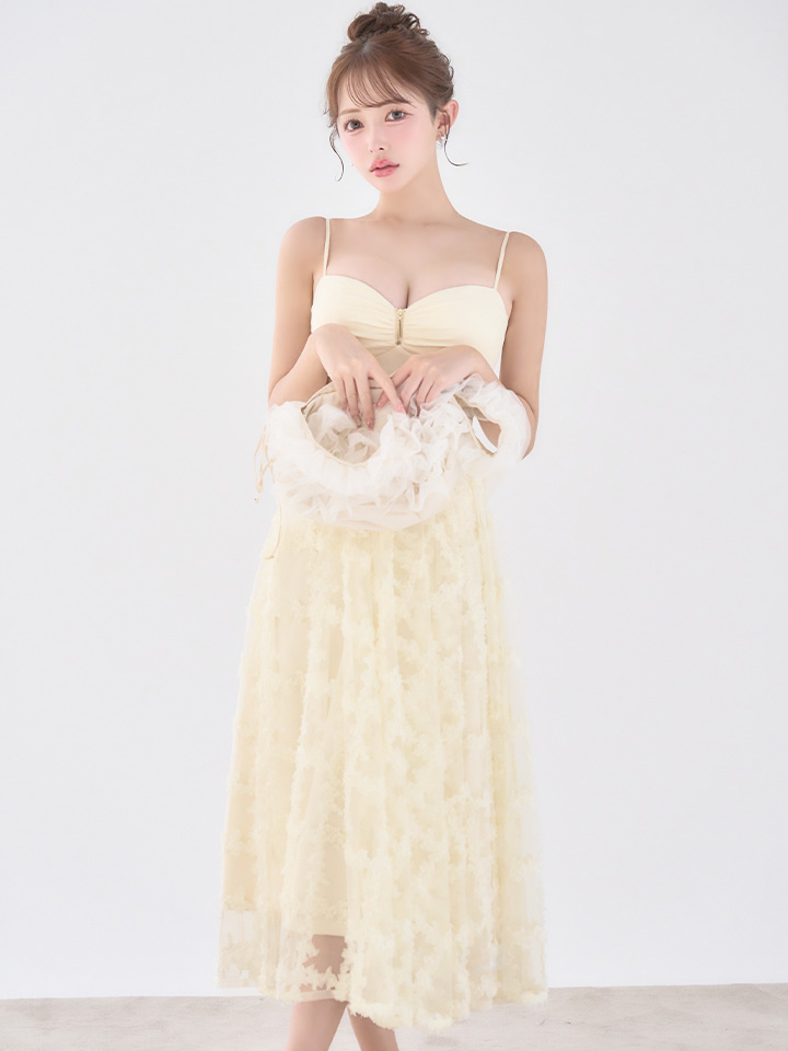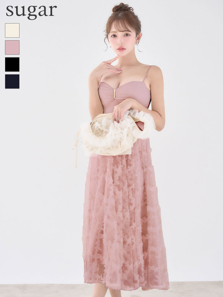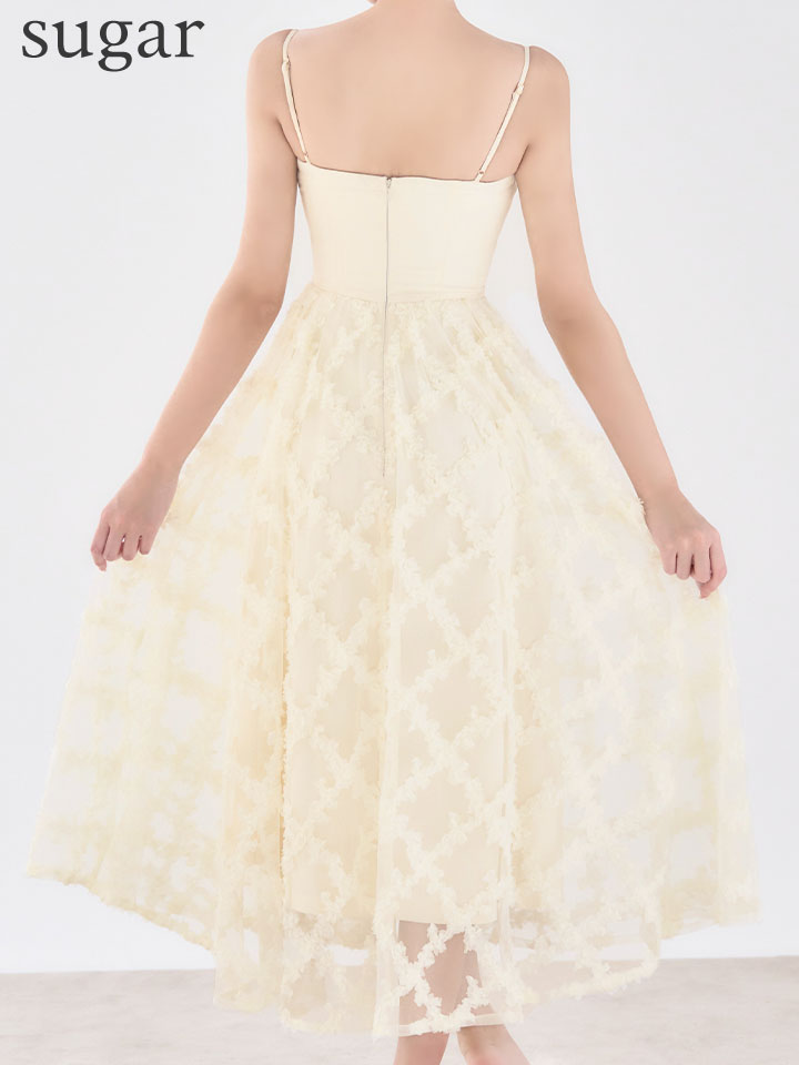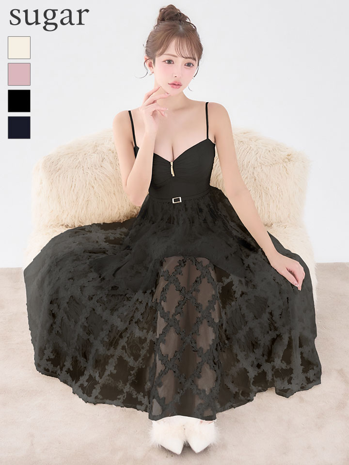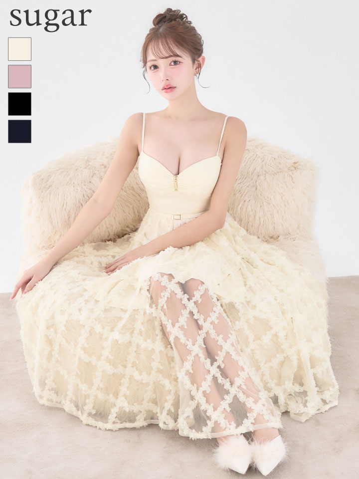 XS-Lサイズあり【ROBE de FLEURS/ローブドフルール】フラワーレース/ フレア/ キャミ/ ミモレ丈/ ワンピース/ ミディアムドレス/ キャバドレス[OF08] [FM3467-P-S250827]