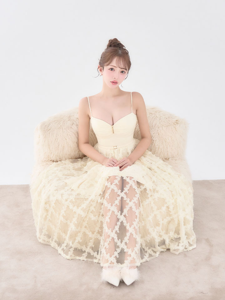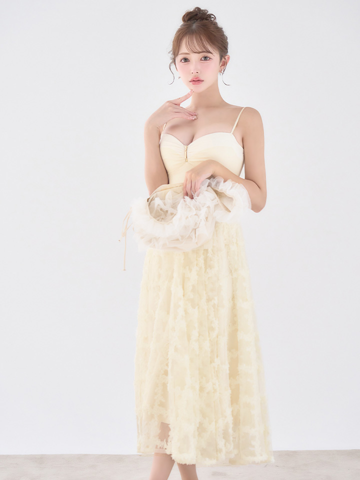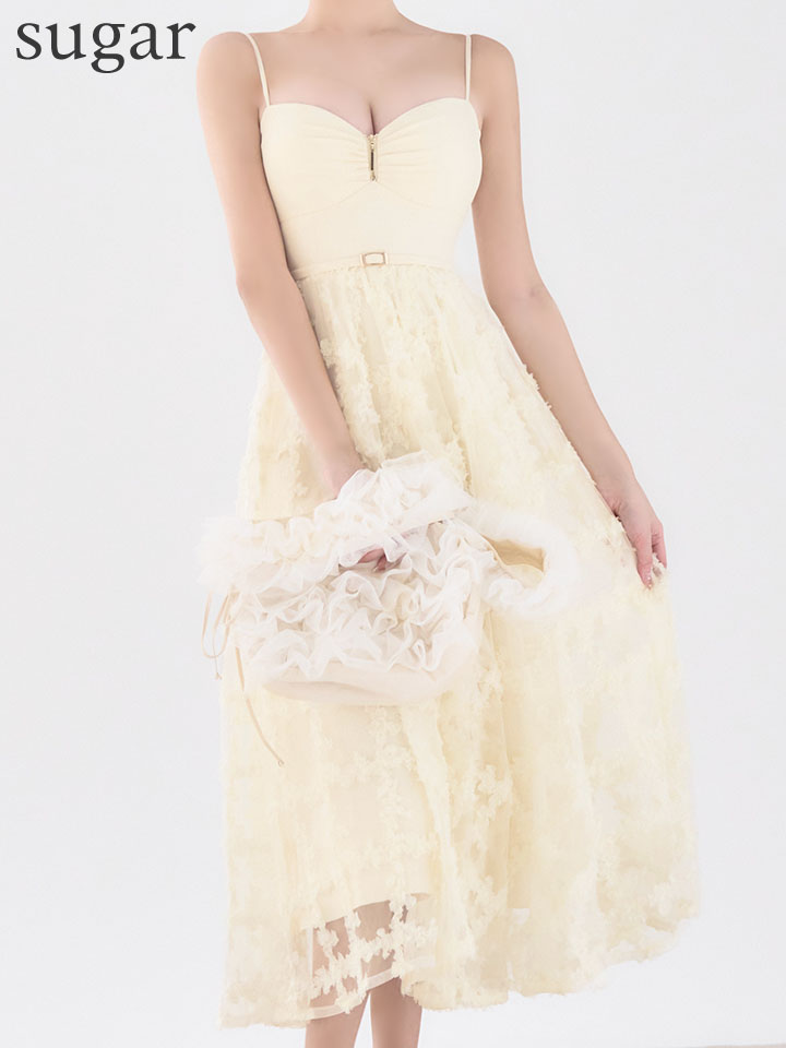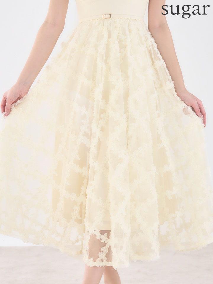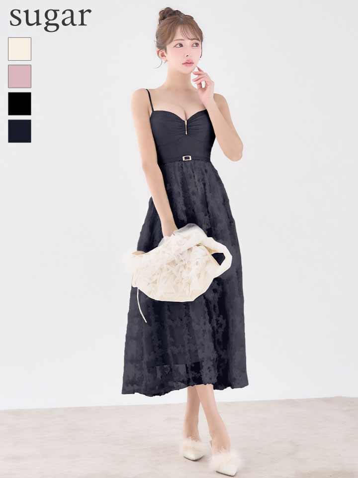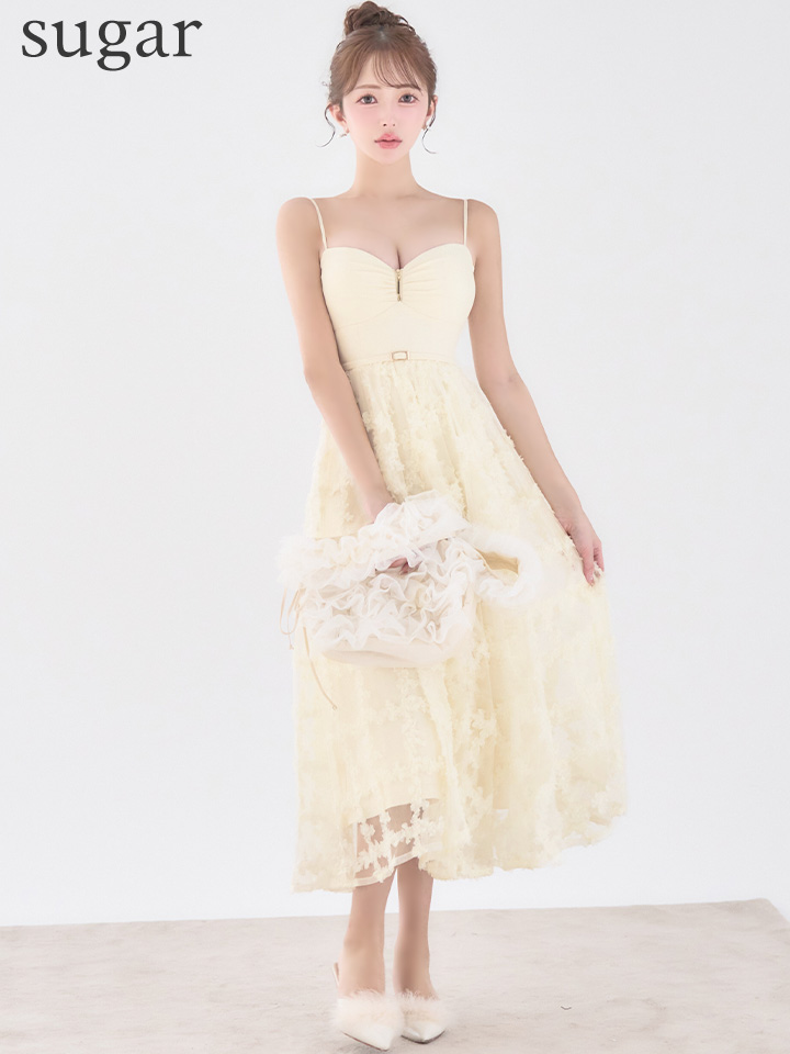 XS-Lサイズあり【ROBE de FLEURS/ローブドフルール】フラワーレース/ フレア/ キャミ/ ミモレ丈/ ワンピース/ ミディアムドレス/ キャバドレス[OF08] [FM3467-P-S250827]