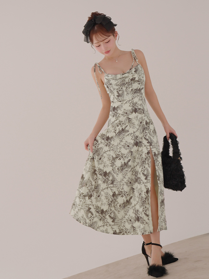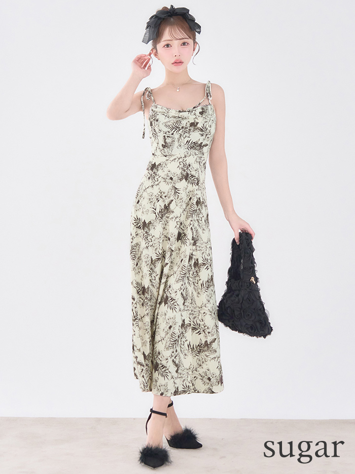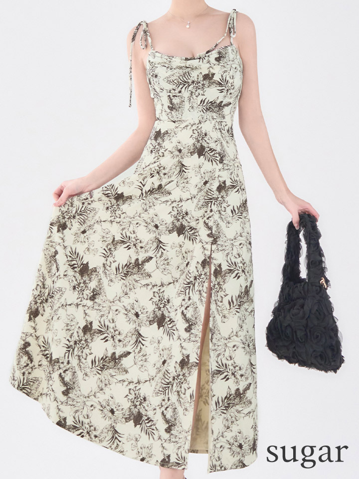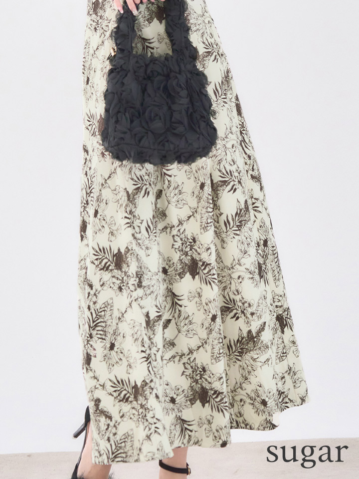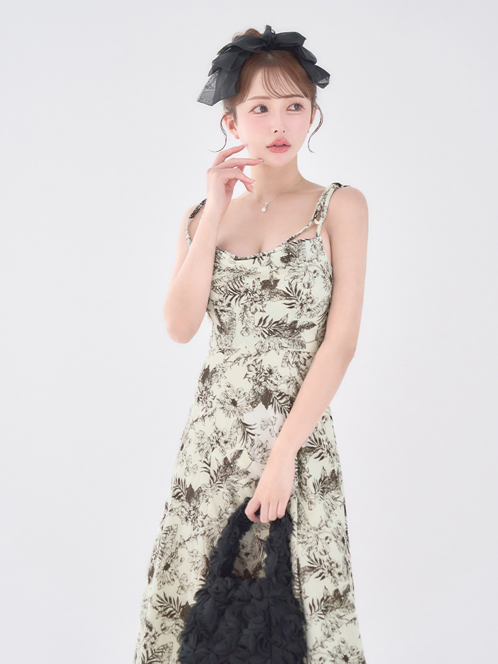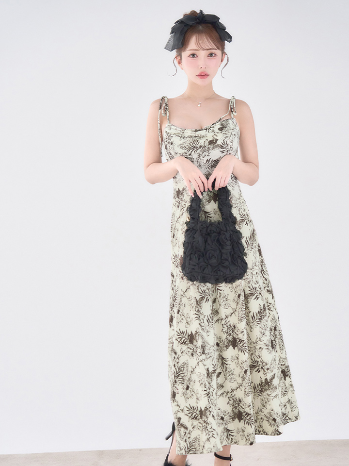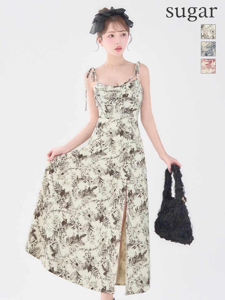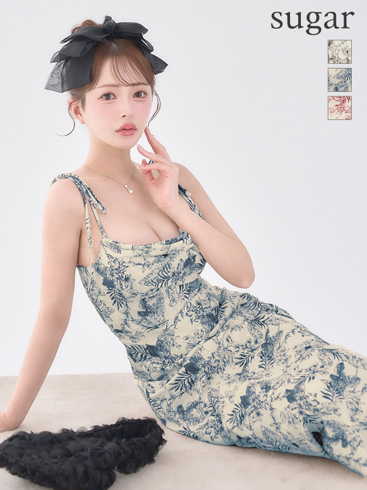 Lサイズあり【DEA./ディア】花柄サテン/ ショルダーリボン/ フレア/ ミディアムドレス/ キャバドレス long[OF08] [DE4603-R-S250827]